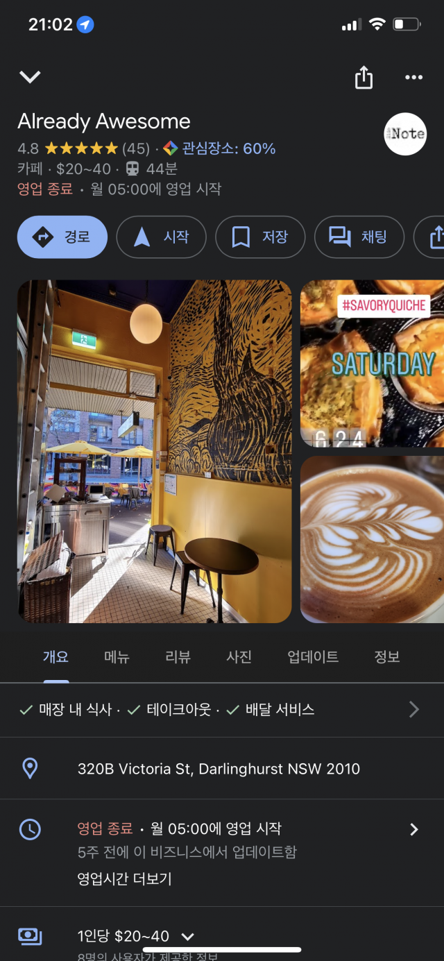 킹스크로스에서 5분거리에 있는 Already awesome 카페에서 주방 풀/파트 타임직원을 구합니다! 한가하고 작은 주방이다보니 보통 한두명이서 서비스를 칠 것 같습니다. 주 5일 출근이고 오후 2시면 클로징합니다. 저희 카페주방의 가장 큰 장점은 자유도가 높은 것입니다. 하고싶으신 요리가 있으시면 그 주의 스페셜도 해보셔도 되고 메뉴도 새로 짜보실 수 도있습니다. 주급은 협의후에 결정하겠습니다.대부분 서비스를 혼자 하셔야되는 경우가 있기에 되도록이면 카페경력이나 주방경력 최소 1~2년은 있으셔야 합니다.